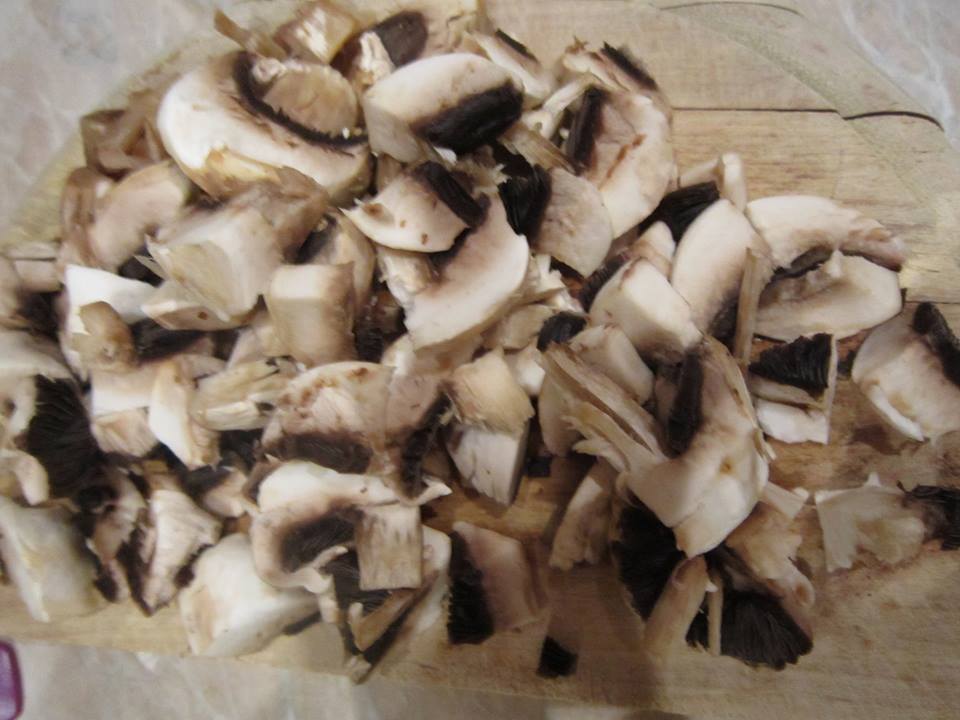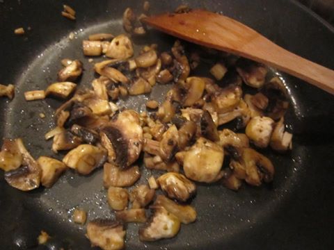 Addig készítsük el a gombát. Egy közepes méretű serpenyőbe önstük bele a maradék 2 evőkanál olívaolajat és ha forró, hozzáadjuk a felszeletelt gombát.