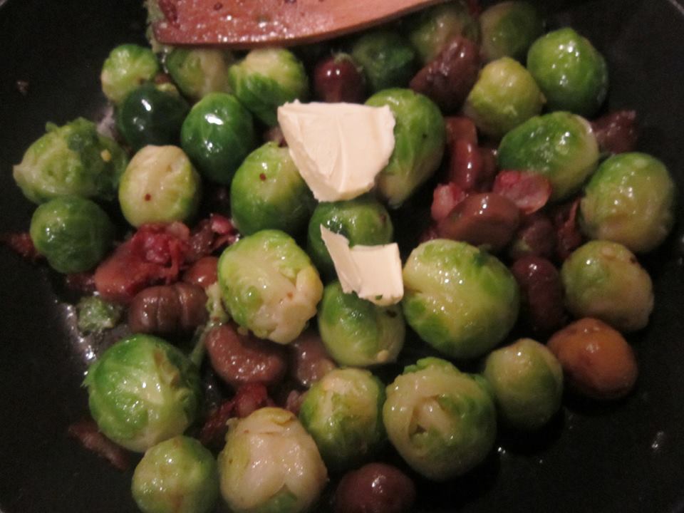 Majd hozzáadjuk a gesztenyét és 5 percig pirítjuk.