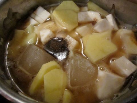 Felöntjük a húslevessel, ha nem fedi el a zöldségeket, akkor még egy kis vízzel pótoljuk. Sóval, borssal ízesítjük, fedő alatt puhára főzzük.
