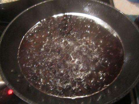 Ha túl sok zsír gyűlt össze a serpenyőben, öntsük le megint, ez jó lesz majd zsíros kenyérnek. Max két evőkanálnyi maradjon a serpenyőben, de a letapadt részeket ne szedjük ki. Tegyük félre a serpenyőt, mert ha túl forró, bajban leszünk. Pirosban fog ragyogni a konyha a bortól.
