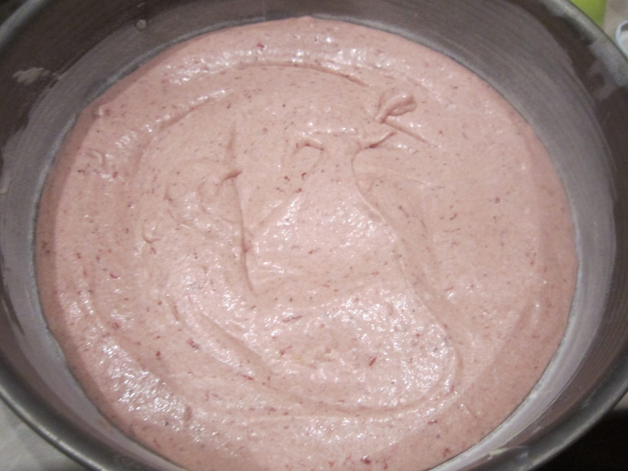 Melegítsük elő a sütőt 180 fokra vajazzunk ki egy tortaformát. A lisztet, a cukrot, a sütőport, és a sót egy nagy keverő tálba tesszük. Hozzáadjuk a vajat és simára keverjük, belekeverjük az eper pürét.